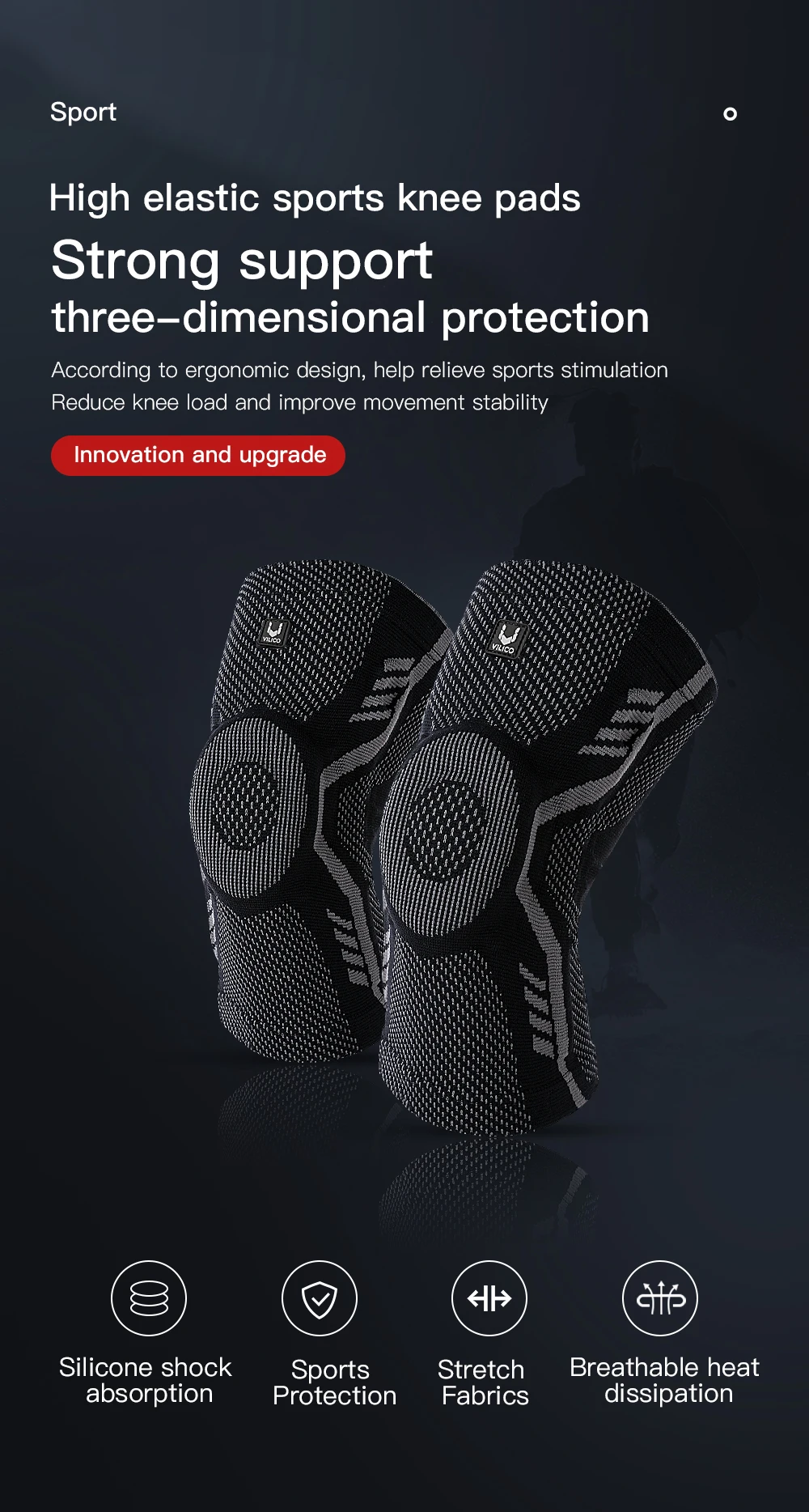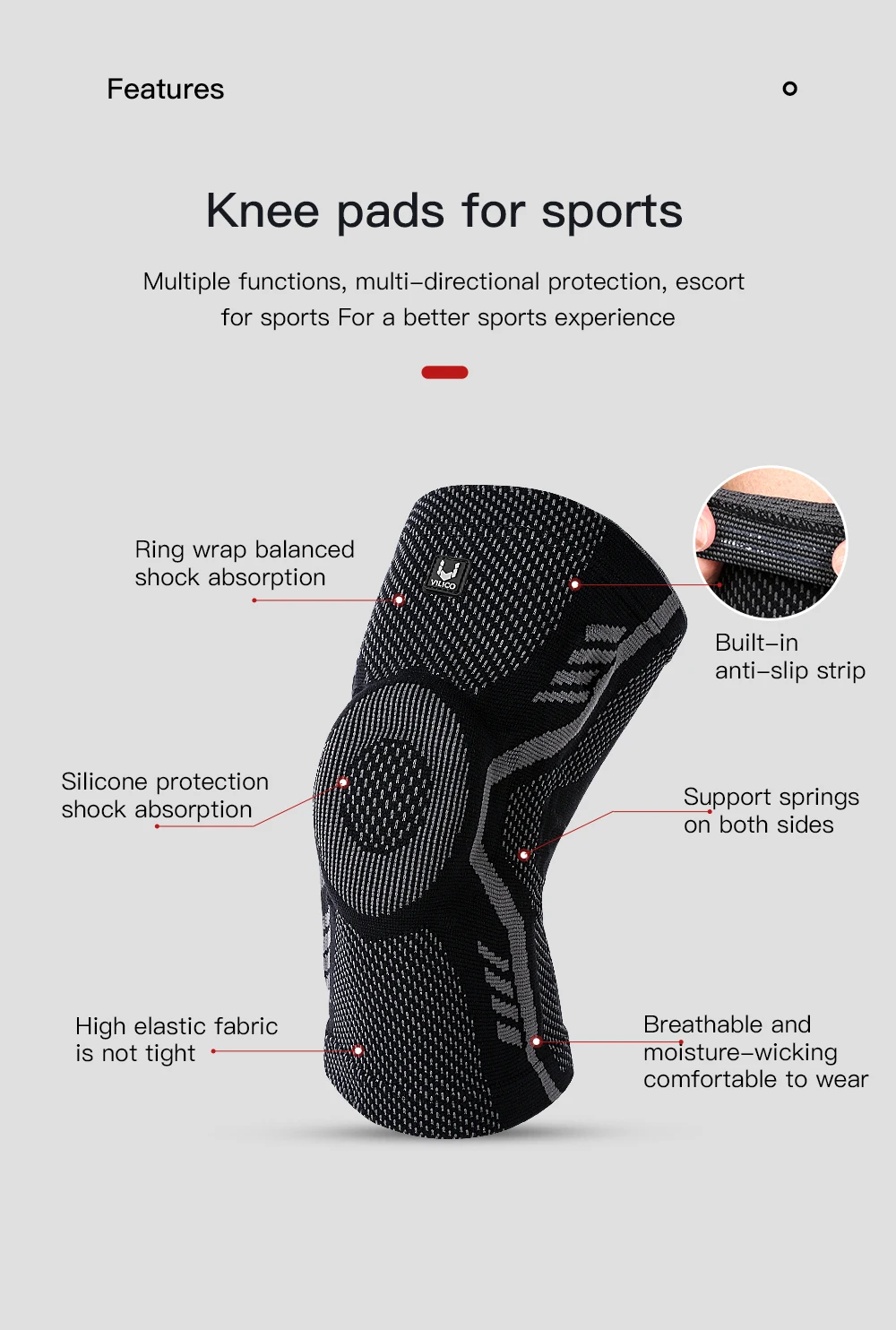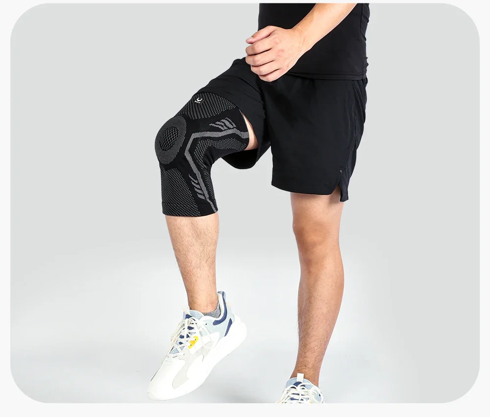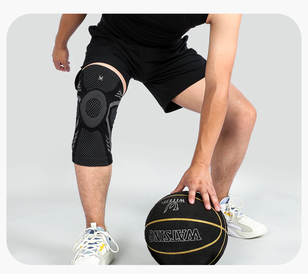 1 Piece Knee Brace Silicone Pads Spring Support High Elastic Breathable Knee Sleeves Protect Meniscus Basketball Sports Guard