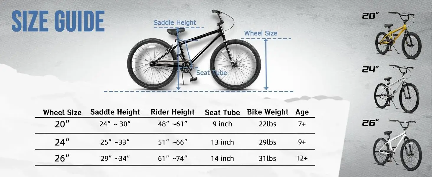 The dedicated performance stunt stem allows you to master tricks and carve tight lines. Available in sizes 20", 24", or 26", this bike suits beginner to advanced riders. It includes multiple colors and comes with accessories like reflectors, pedals, tools, and a user manual. Choose the right size for your needs. Your package includes one bicycle with accessories for a comprehensive start.