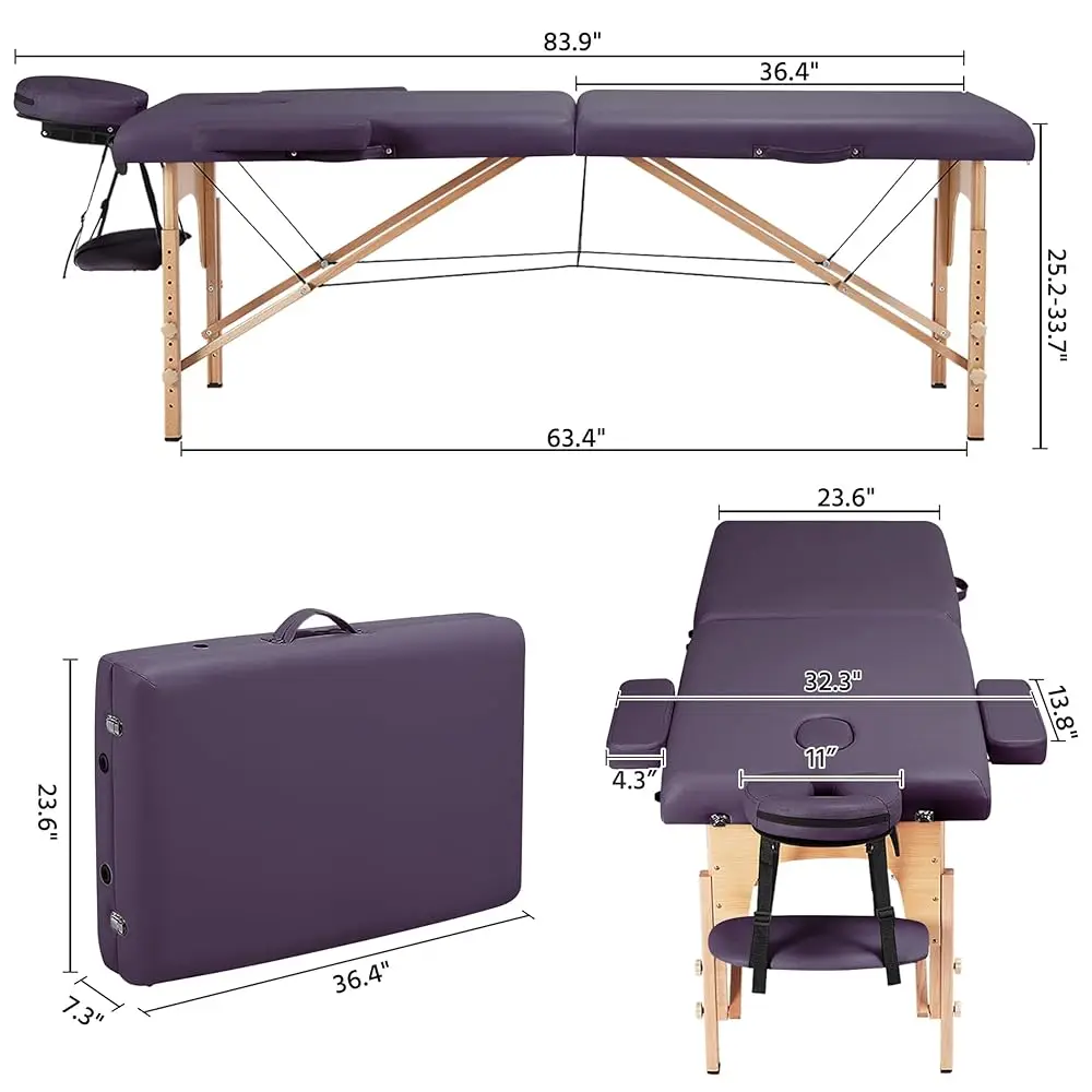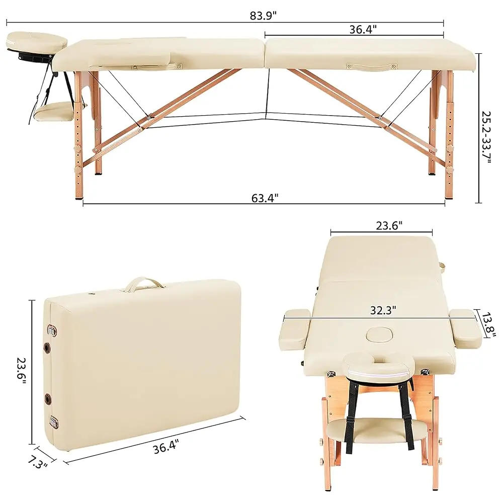 - Excellent Workmanship: The professional spa bed is constructed of beech wood legs, aluminum alloy and composite board frames, and a spongy cushion covered by durable faux leather. Give you a comfortable experience and a durable service using this massage table