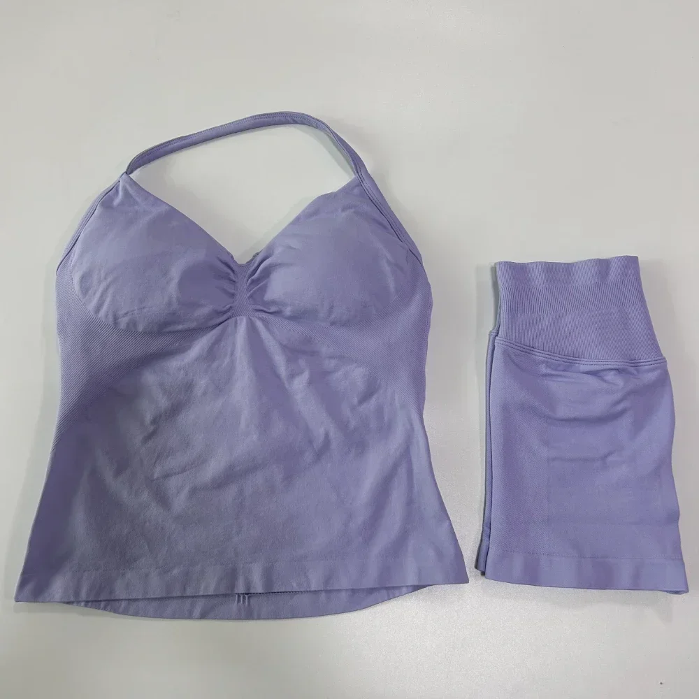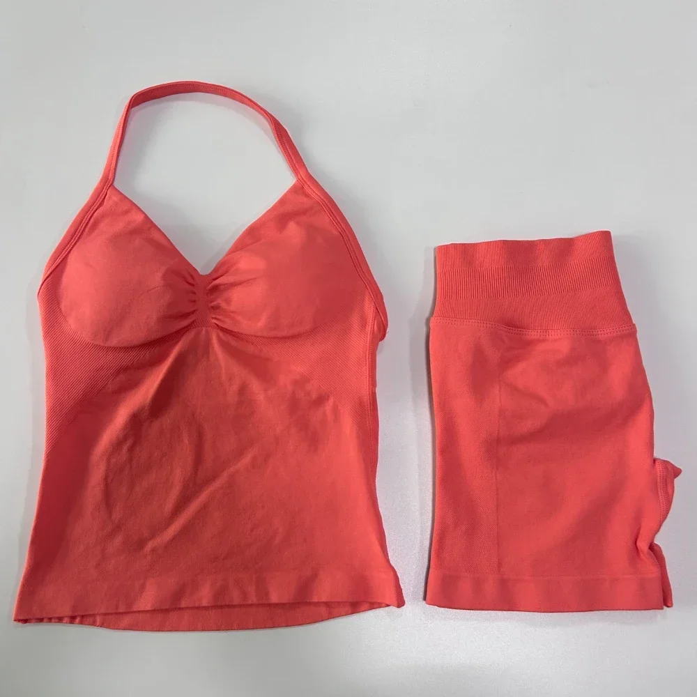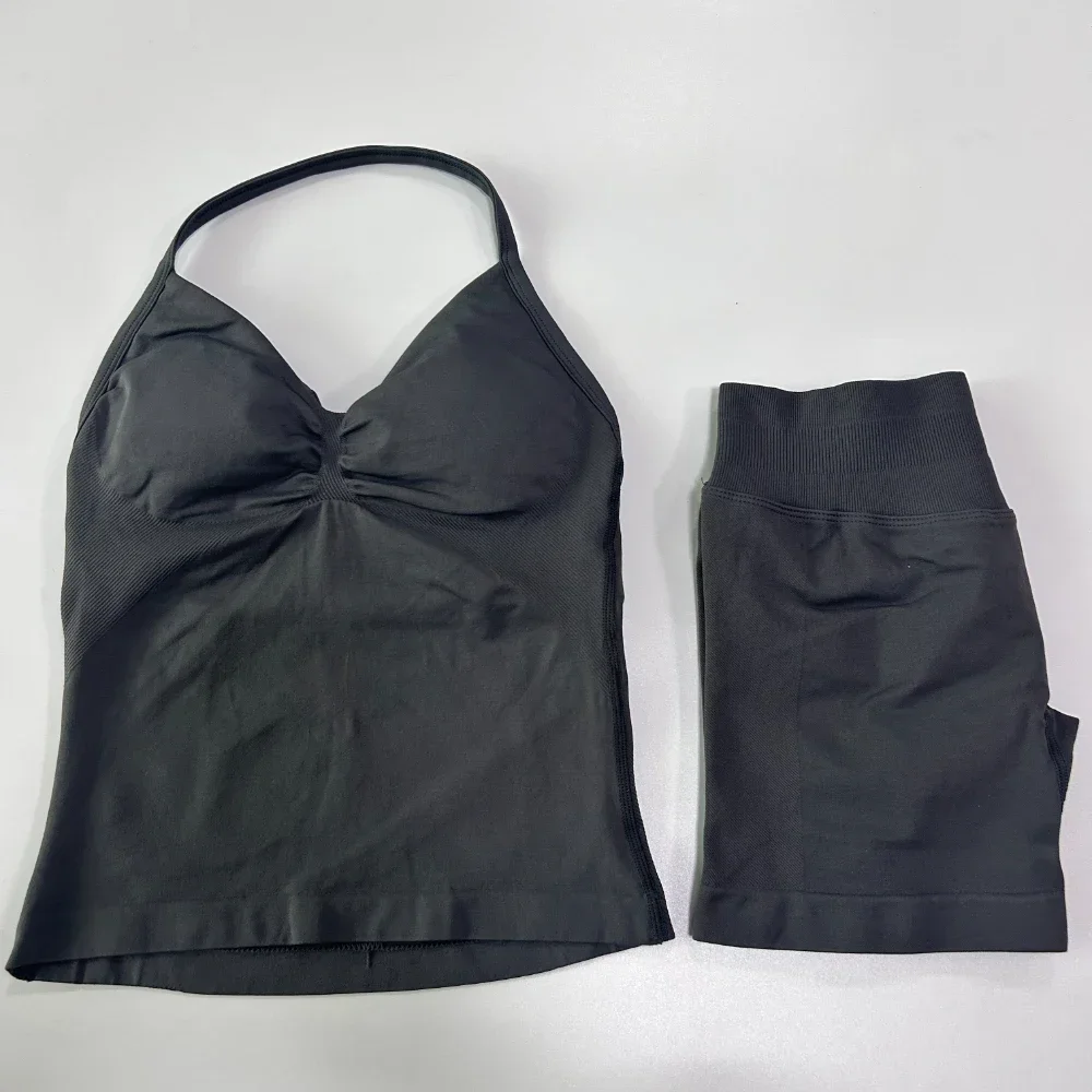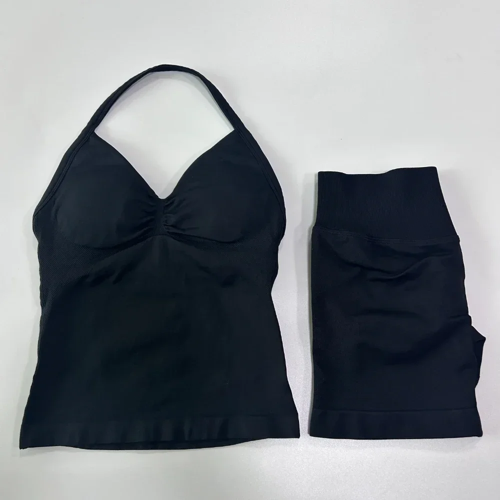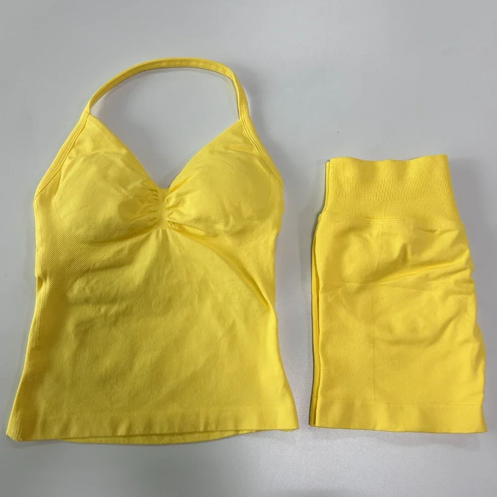 2Pcs Impact Gym Set Women Backless Tank Tops High Waist Scrunch Seamless Shorts Gym Suit Fitness Clothes Activewear Workout Sets