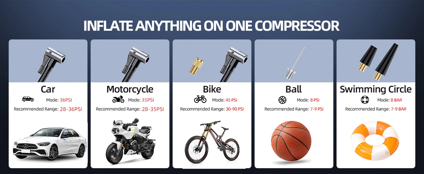 4-IN-1 Car Jump Starter with Air Compressor Peak 5000A Auto Battery Booster 150PSI Air Pump Portable Power Bank Tire Inflator