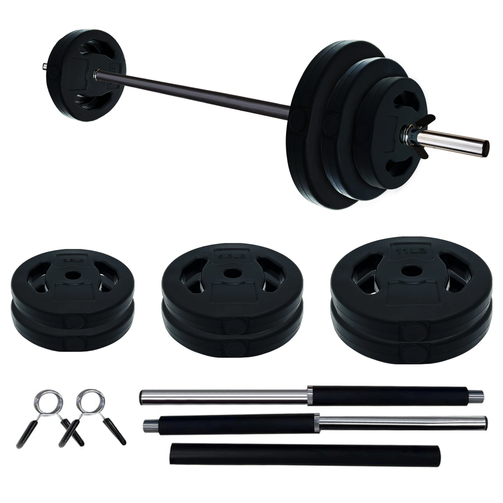 [Versatility]: Suitable for a variety of exercises, the barbell set is great for personal workouts, and its easily replaceable weight plates provide versatility for strength training and cardio fitness pump training.