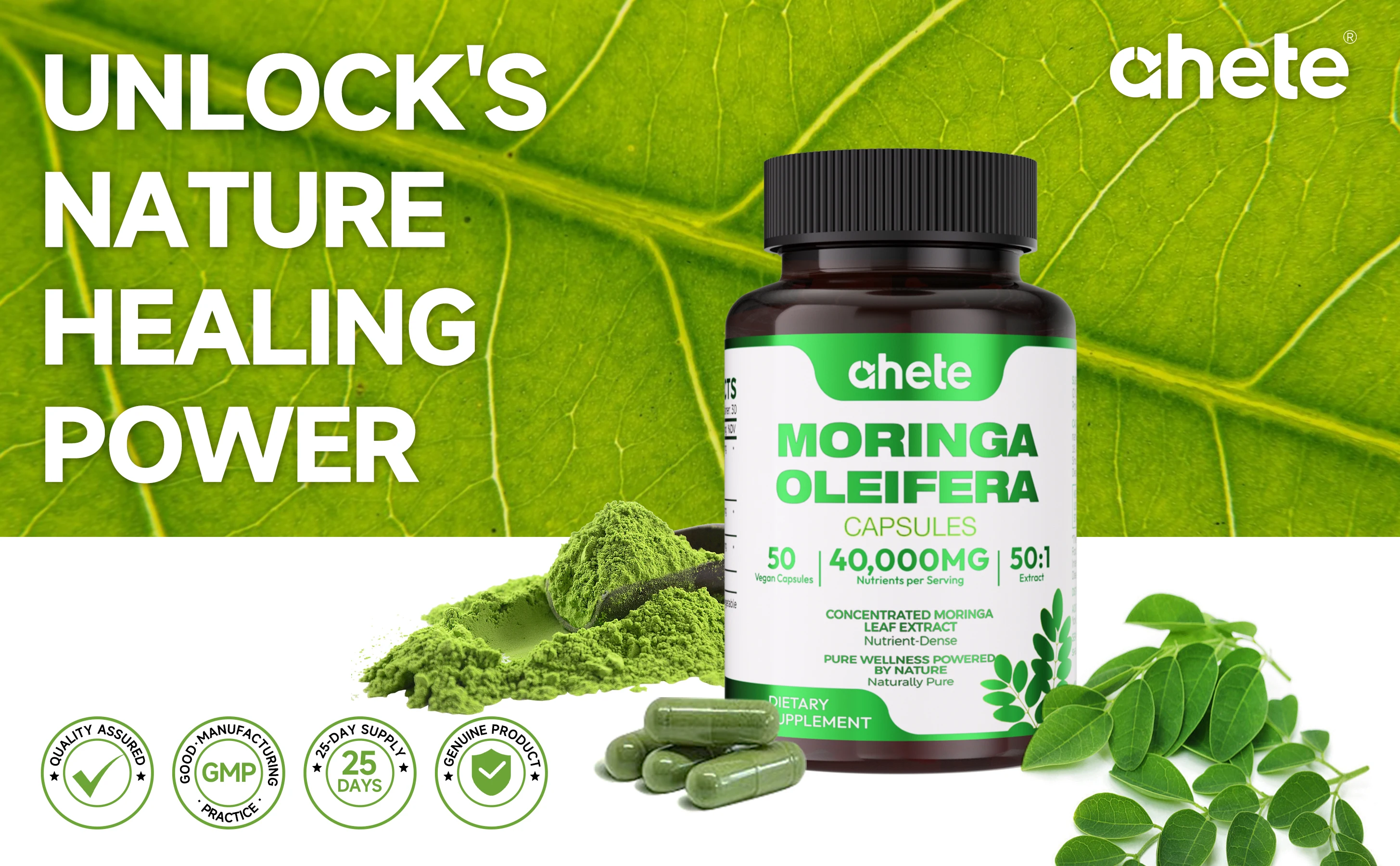 AHETE Moringa Capsules with Turmeric & Black Pepper