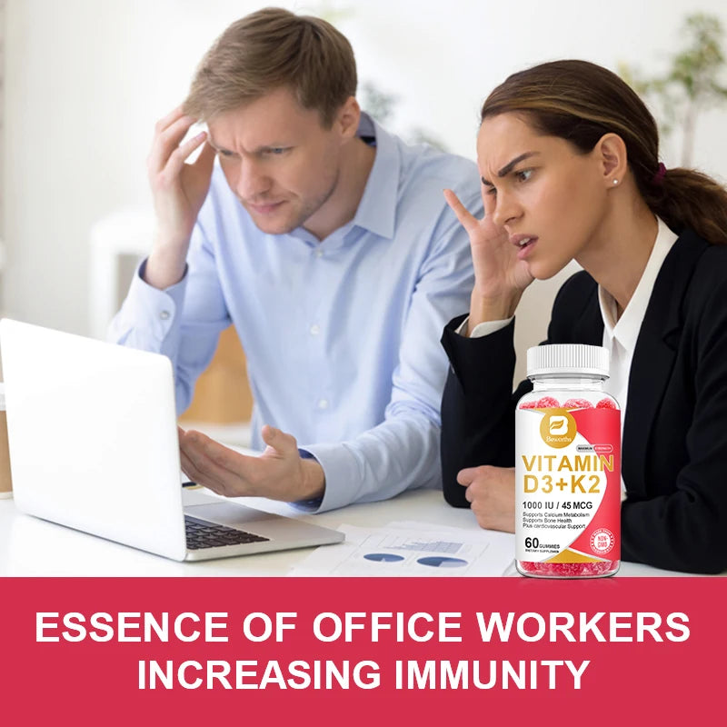 BEWORTHS 60PCS Vitamin D3+K2 Gummies 1000 IU Vitamin D3 + 45 Mcg Vitamin K2 for Bone Health Promotes Healthy Muscle Function