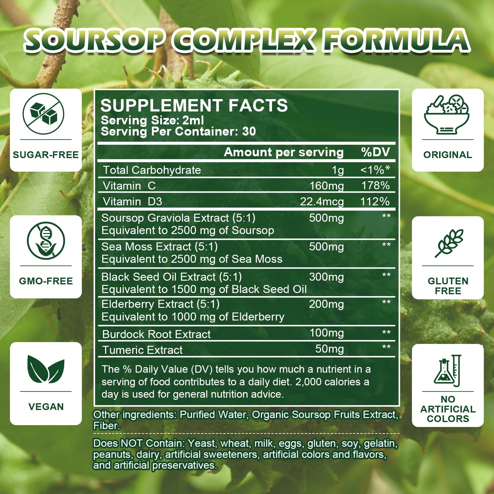 BEWORTHS Sea Moss & Soursop Graviola Extract Drops Support Immunity Digestion and Kidney Health Inflammatory Support Gluten-Free