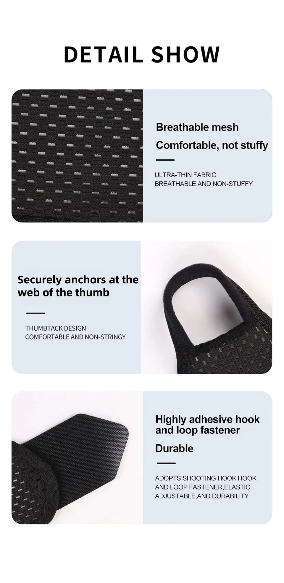 4.Securely anchors at the web of the thumb, providing comfort and shape retention