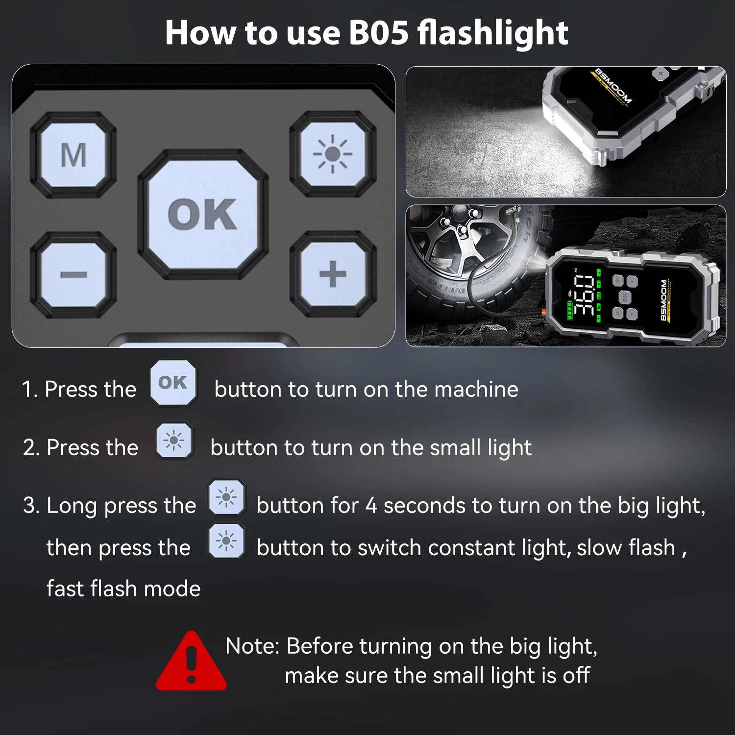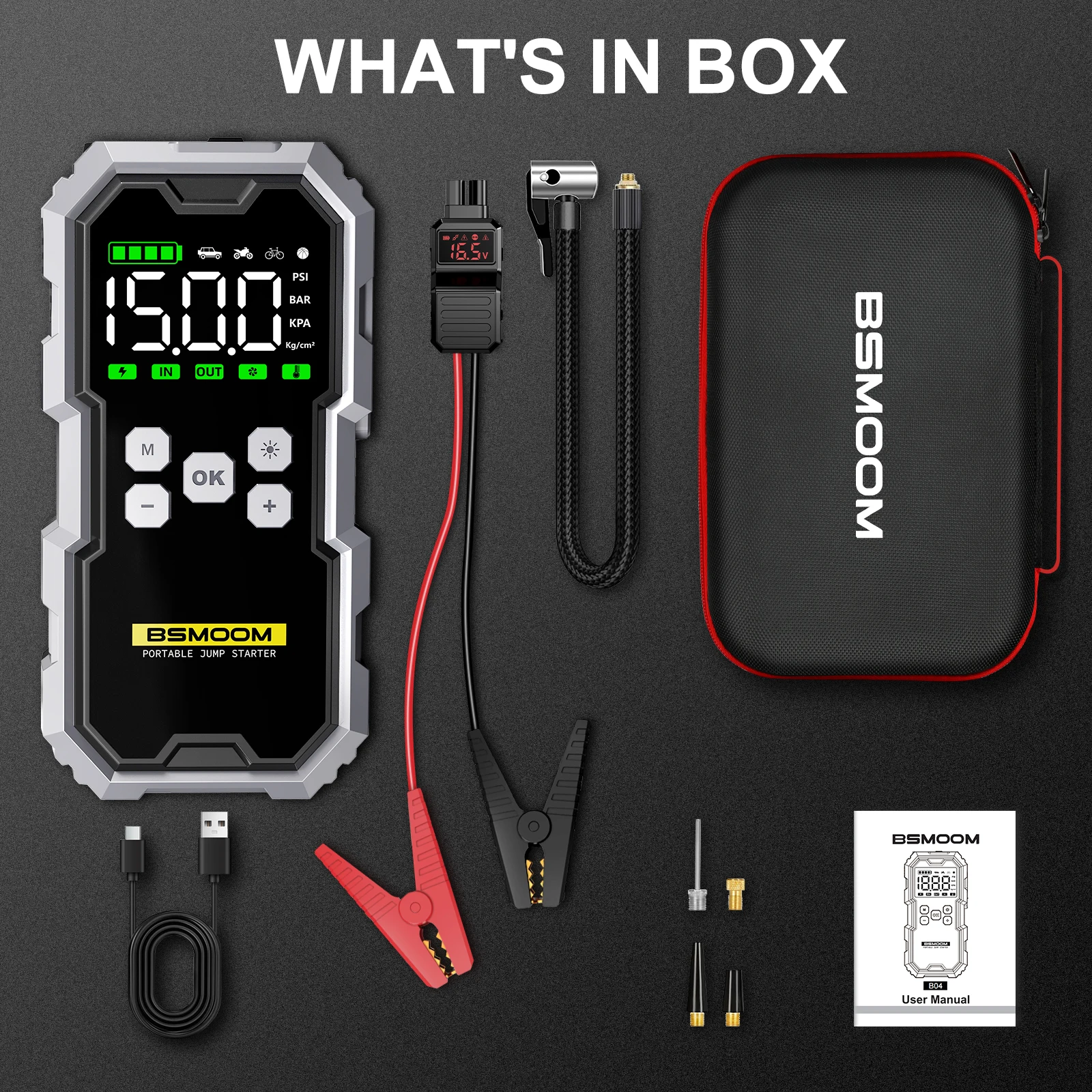 BSMOOM Car Jump Starter Power Bank Portable 150PSI Air Pump Car Battery Emergency Boosters Starting Device Car Starter