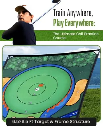 - One of a Kind : The World's First 6.5 x 6.5 feet Complete Golf Practice & Fun Arena. Unlimited short game practice to level up your game. Crazy last-man-standing battles at your next event