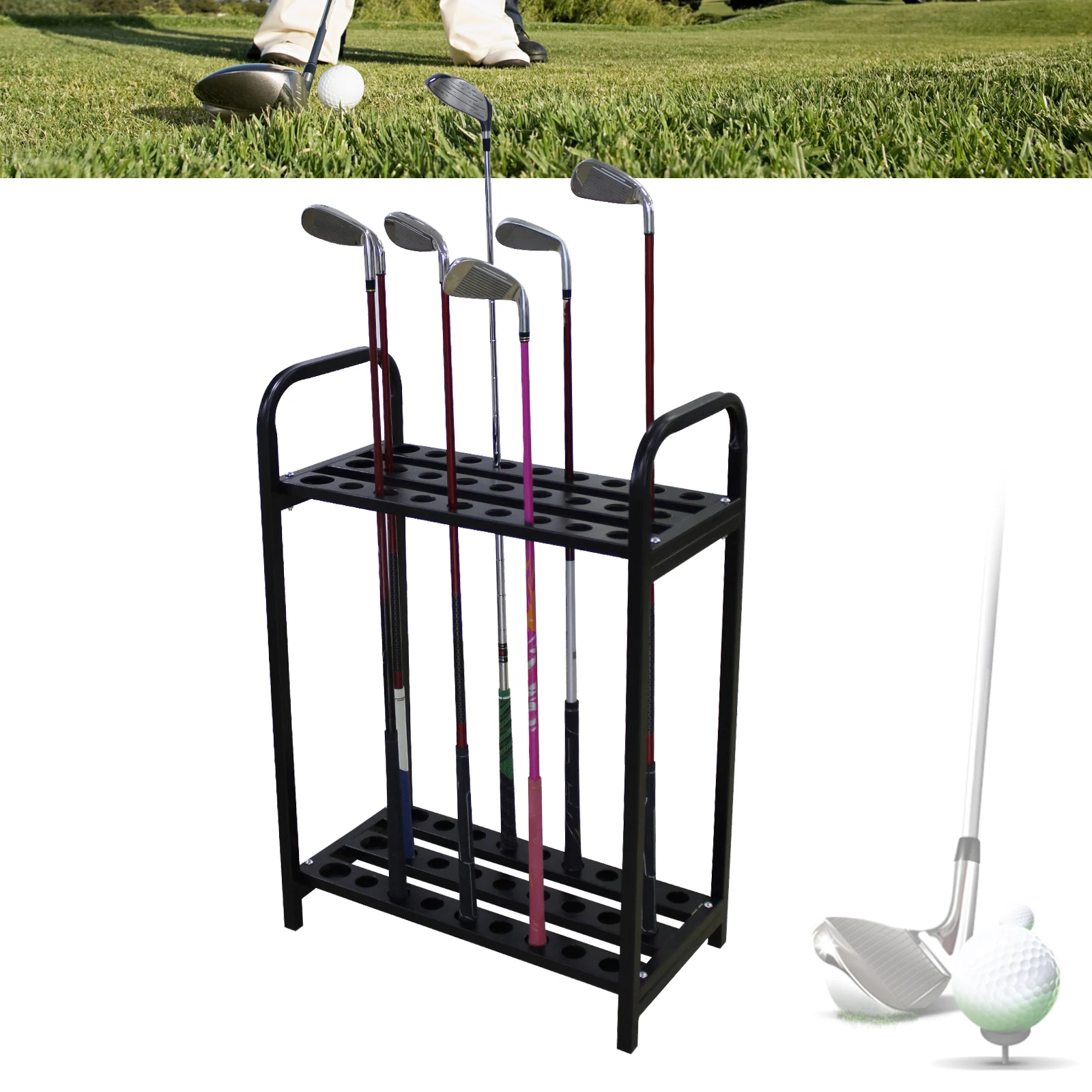 Made of sturdy steel, sun-proof and anti-corrosion, longer service life. (THE CLUBS ARE NOT INCLUDED)