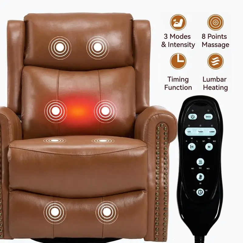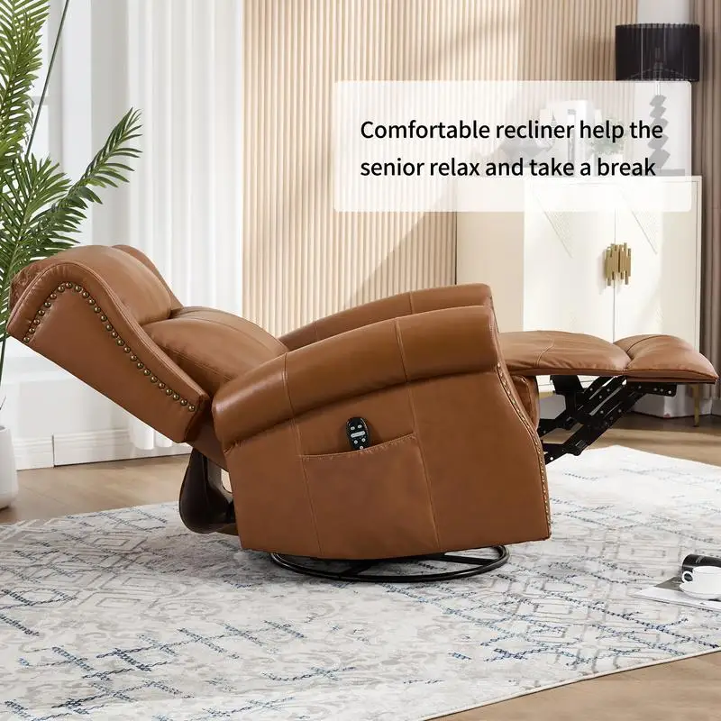 Product Name: Heat Massage Manual Recliner Chair with Rocker and Swivel in Genuine leather for Living Room, Yellow